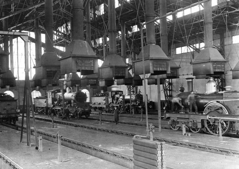 17. Catalogusnummer: 166272. Interieur van de rechte locomotiefloods van de S.S. te Roosendaal.
