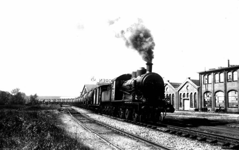 8. Catalogusnummer: 161300. Stoomlocomotief NS 3410 (serie NS 3400) met een olietrein te Zwolle.