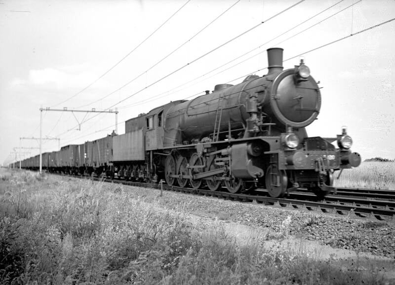 10. Catalogusnummer: 160452. Stoomlocomotief NS 5069 (serie NS 5000/5100, "Austerities", ex War Department nr. 73723) met een goederentrein. datering: tussen 01-01-1946 en 31-12-1952. Foto: Nederlandse Spoorwegen - Het Utrechts Archief / hetutrechtsarchief.nl - Opmerking: Afbeelding behoort tot de Collectie De Pater. Licentiestatus: CC0 1.0 Publiek Domein Verklaring