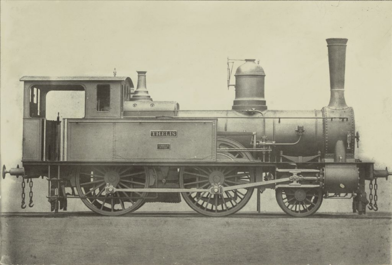 1. Stoomlocomotief HIJSM 61-62, later NS 5101-5102. Hier de HIJSM 61 Thelis, 13364, Spoorwegen in Beeld, Spoorwegmuseum, 1874 - 1928. Foto: ETH-Bibliothek Zürich, Bildarchiv / Ans_05373-1863 - nl.wikipedia.org - Licentiestatus: CC0