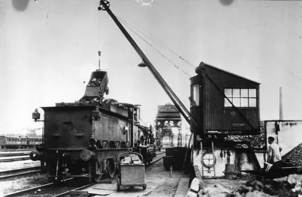 14. Catalogusnummer: 155256. Een stoomlocomotief uit de serie NS 1701-1835 tijdens het kolenladen in het depot te Eindhoven. Datering: Tussen 01-01-1925 en 31-12-1935. Foto: Nederlandse Spoorwegen - Het Utrechts Archief / hetutrtechtsarchief.nl Licentiestatus: Publiek Domein