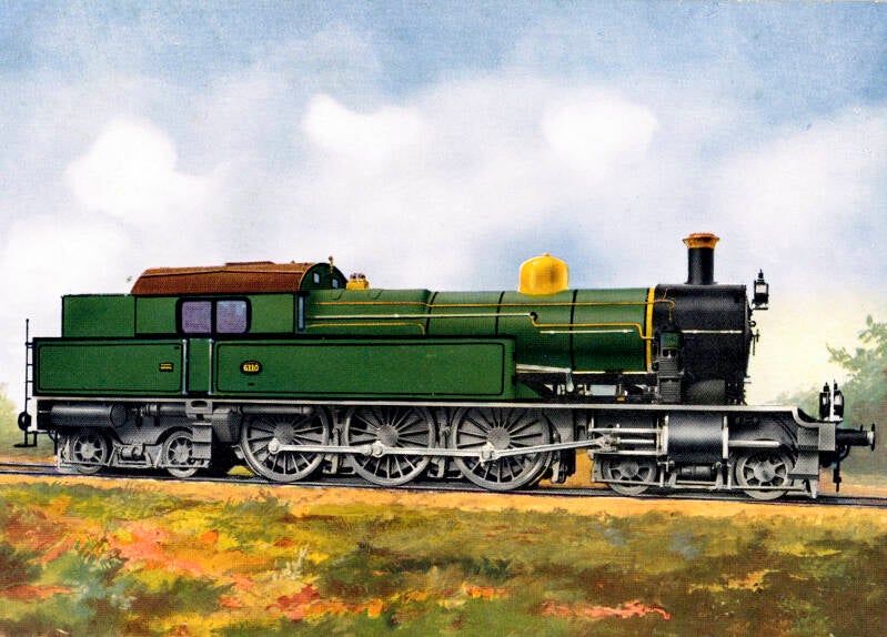 6. Een stoomlocomotief uit de serie NS 6100. Deze locs werden vooral gebruikt voor forensentreinen in 't Gooi.
