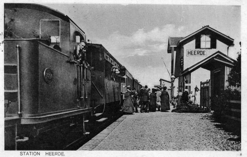 2. Catalogusnummer: 161298. Het perron van het N.S.-station Heerde te Heerde, met een trein getrokken door de stoomlocomotief NS 7404 (serie NS 7400). Datering: Tussen 01-01-1920 en 31-121923.