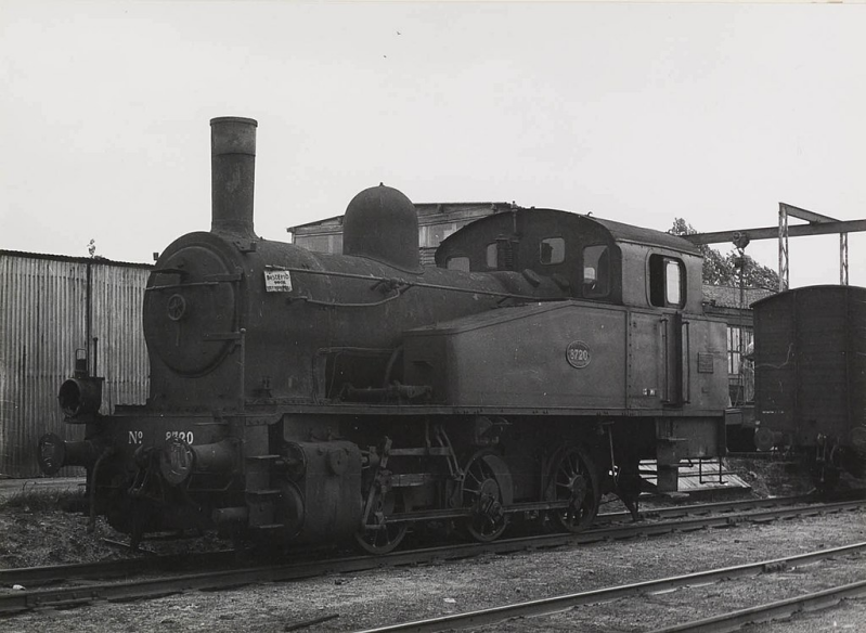 9. Stoomlocomotief NS 8720 (serie NS 8700) in afwachting van sloop. Datering: 5 oktober 1957.